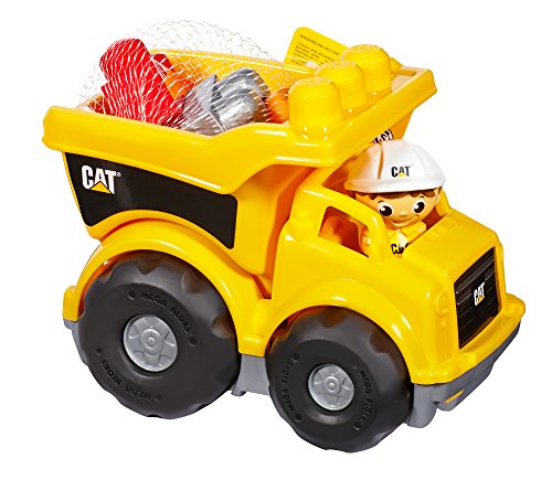 The Mega Bloks Caterpillar Large Dump Truck Vehicle! Ideal for ages 1 to 5 years old. Includes 25 blocks and 1 construction worker figure to take the driver's seat! Have your little truck driver get behind the wheel of the Mega Bloks Caterpillar Larg